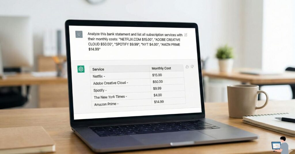 Safety Rule: Never upload full credit card numbers or passwords to an AI. Only upload “Description,” “Date,” and “Amount.”